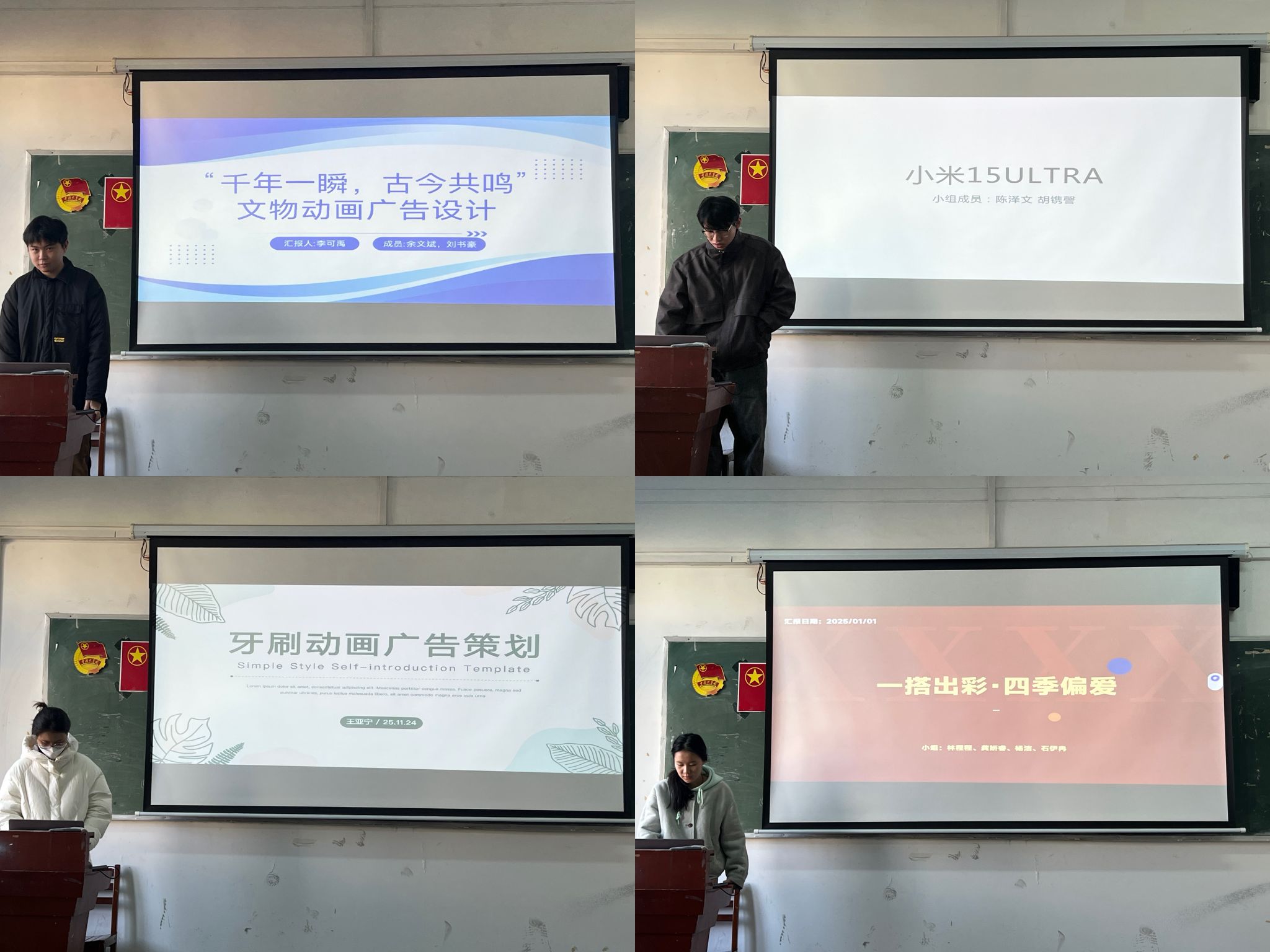 最后是龚妍睿同学的分享,“一搭出彩·四季偏爱”穿搭类动画广告设计,小组成员从四季穿搭出发,以时尚的视觉风格和创意的动画表现,展现不同季节的穿搭魅力。他们通过对服装搭配、色彩组合的动画化呈现,将“一搭出彩”的时尚理念传递给观众,体现了在时尚类动画广告设计中对潮流的把握和对创意的追求,为穿搭品牌推广提供了时尚感十足的创意方案。