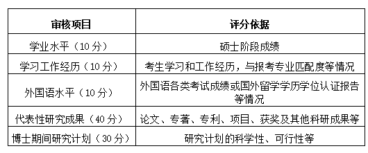 材料审核满分100分,由材料考核小组进行审核评分。具体评价材料如下:
