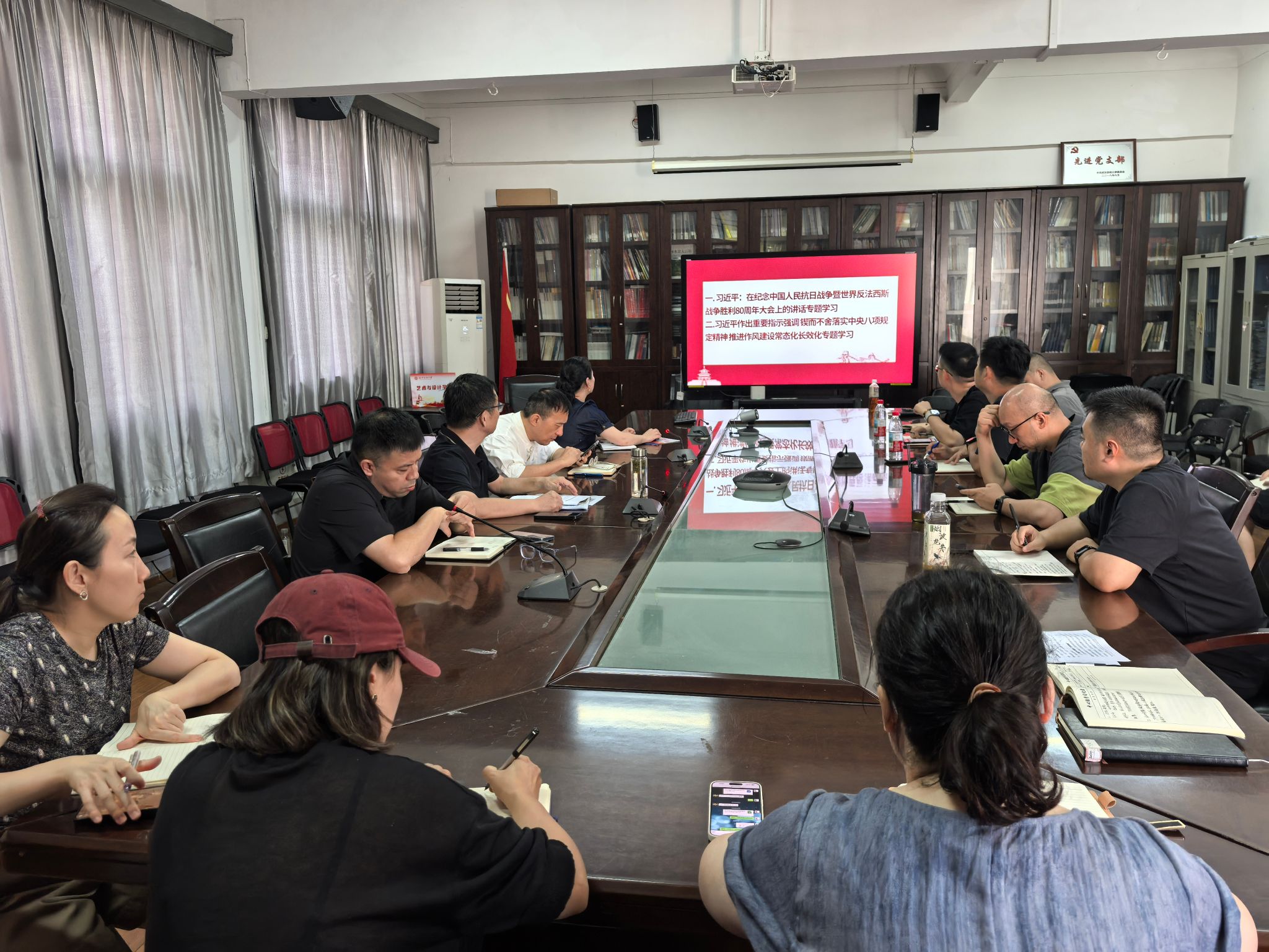 会上,与会人员学习了习近平总书记在纪念中国人民抗日战争暨世界反法西斯战争胜利80周年大会上的重要讲话。大家一致认为,总书记重要讲话深刻阐述了抗战胜利的伟大意义,强调要弘扬全人类共同价值,坚定捍卫国际公平正义,坚持走和平发展道路,携手构建人类命运共同体。