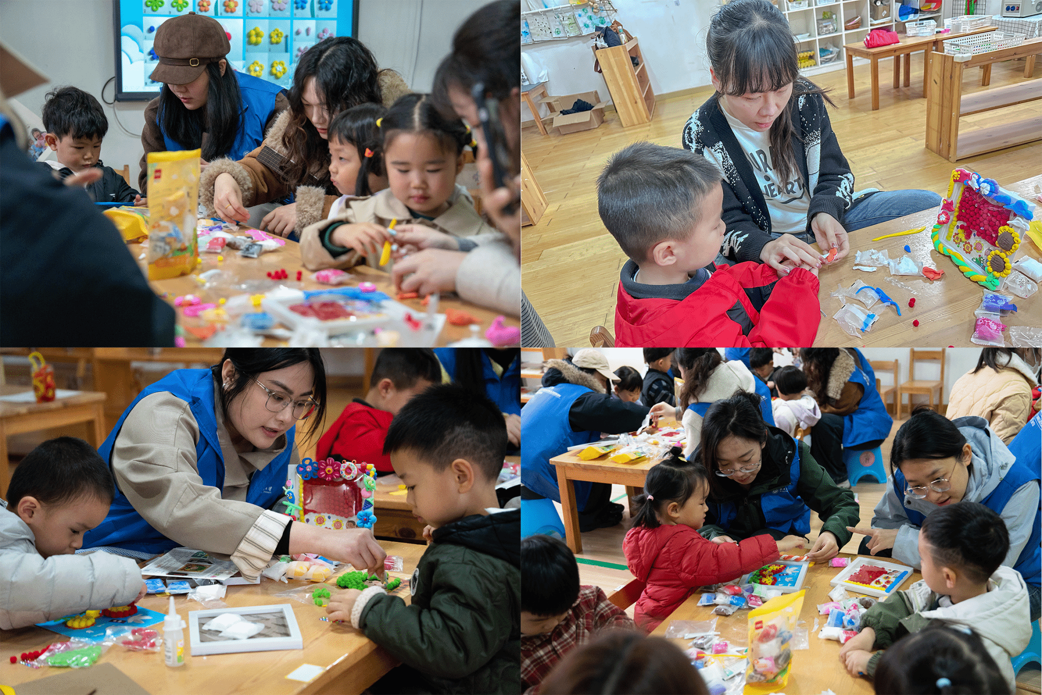 “我要给雷锋叔叔捏一顶最神气的帽子!”一名小朋友举着手中的军绿色粘土,兴奋地说道。在志愿者的耐心帮助下,一面面鲜红的党旗、一个个可爱的雷锋形象在孩子们手中逐渐成形,彩色装饰为相框增添了童趣与活力。