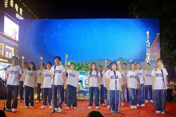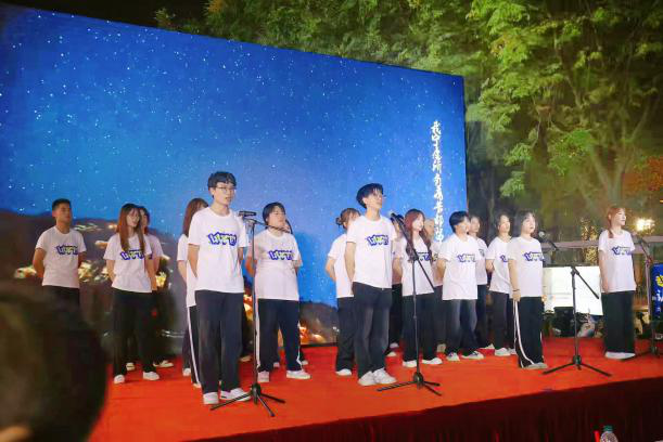 9月15日晚,华罗利广场灯火璀璨、气氛热烈,由关山街道纺织大学社区居民委员会、华罗利广场主办的“奋进新时代 邻里共欢歌”邻里音乐节如期举行。整场晚会节目精彩纷呈,掌声此起彼伏,气氛持续升温。当第十一个节目——《夜空中最亮的星》的旋律悠然响起,来自艺术与设计学院的同学们闪亮登场,将整场演出推向新的高潮。