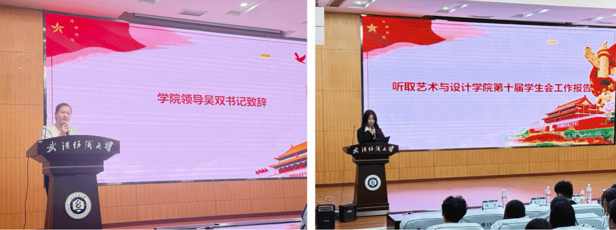 为进一步加强学生组织建设,凝聚学生力量,推动学院学生工作高质量发展。2025年9月28日,艺术与设计学院第十一次学生代表大会在尚美楼T201顺利召开,学院党委副书记吴双、团委书记陈畅、本科辅导员陈放、涂亚腾出席会议,学生代表122人参加大会。