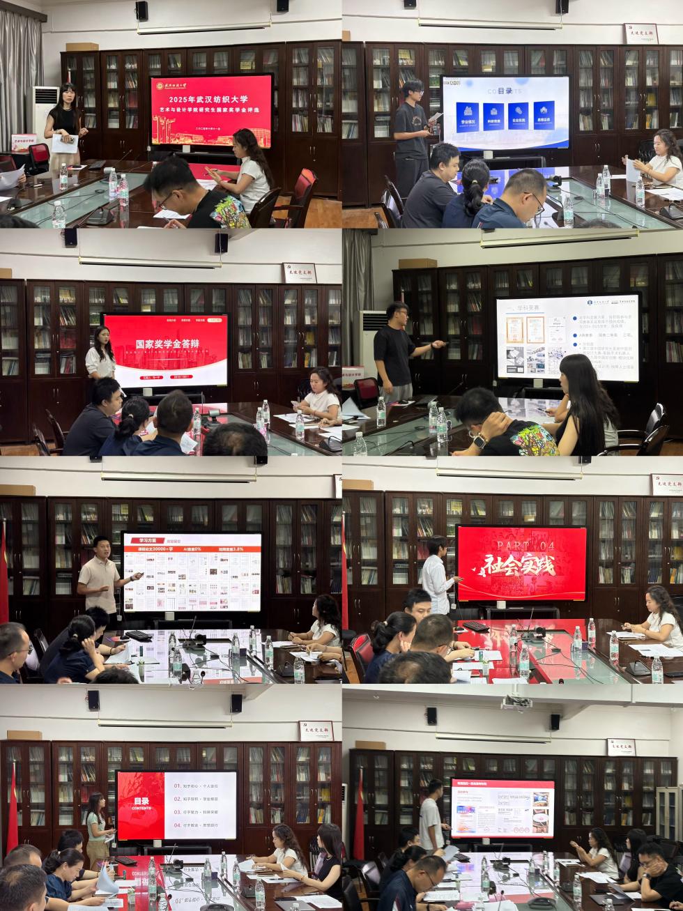 为扎实推进硕士研究生国家奖学金评审工作,充分发挥优秀学子在学术科研与个人发展中的示范引领作用,武汉纺织大学艺术与设计学院于10月11日在学院217会议室组织开展研究生国家奖学金申请评选会。学院副院长刘凡、党委副书记吴双、美术系主任严郡,产品系主任刘勇、艺术学理论系主任张雷、视觉传达设计系主任黄龙飞及全体辅导员参与评审,研究生辅导员陈畅主持会议,30余名师生到场观摩学习。