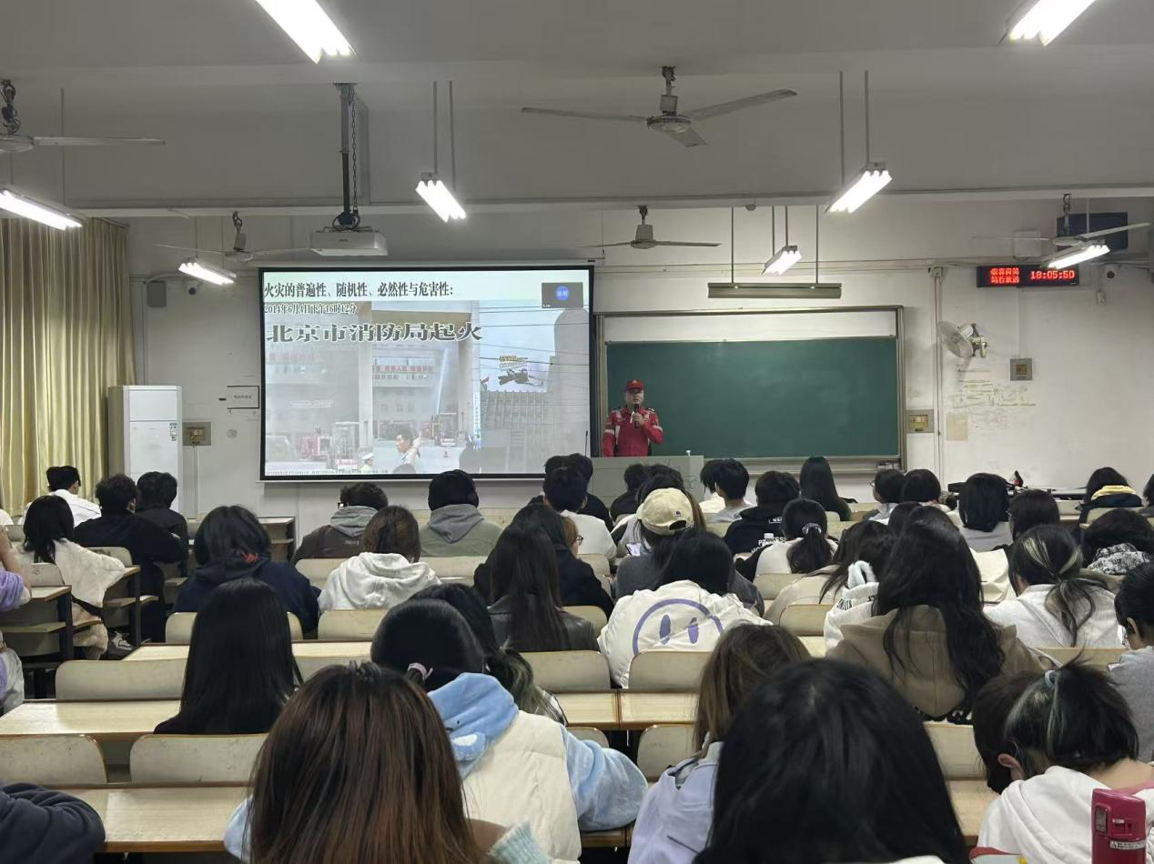 10月23日晚,创新设计学院联合服装学院在南湖校区综合楼510、509、508、611教室共同开展安全知识讲座。武汉宣安防火宣传中心的张凯教官担任主讲人,两个学院共计649名本科生参与此次学习。