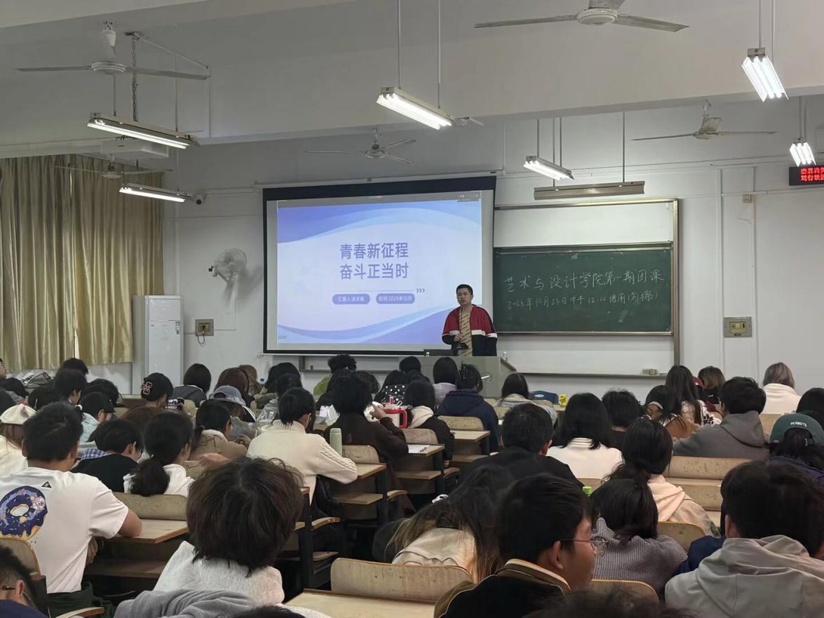 为筑牢青年学子理想信念,激励其以奋斗姿态书写青春,10月23日,创新设计学院在南湖校区尚知楼5-109、5-110教室开展“青春新征程,奋斗正当时”主题团课。本次团课由2025级辅导员涂亚腾主讲,2025级全体新生及新发展团员参加培训。
