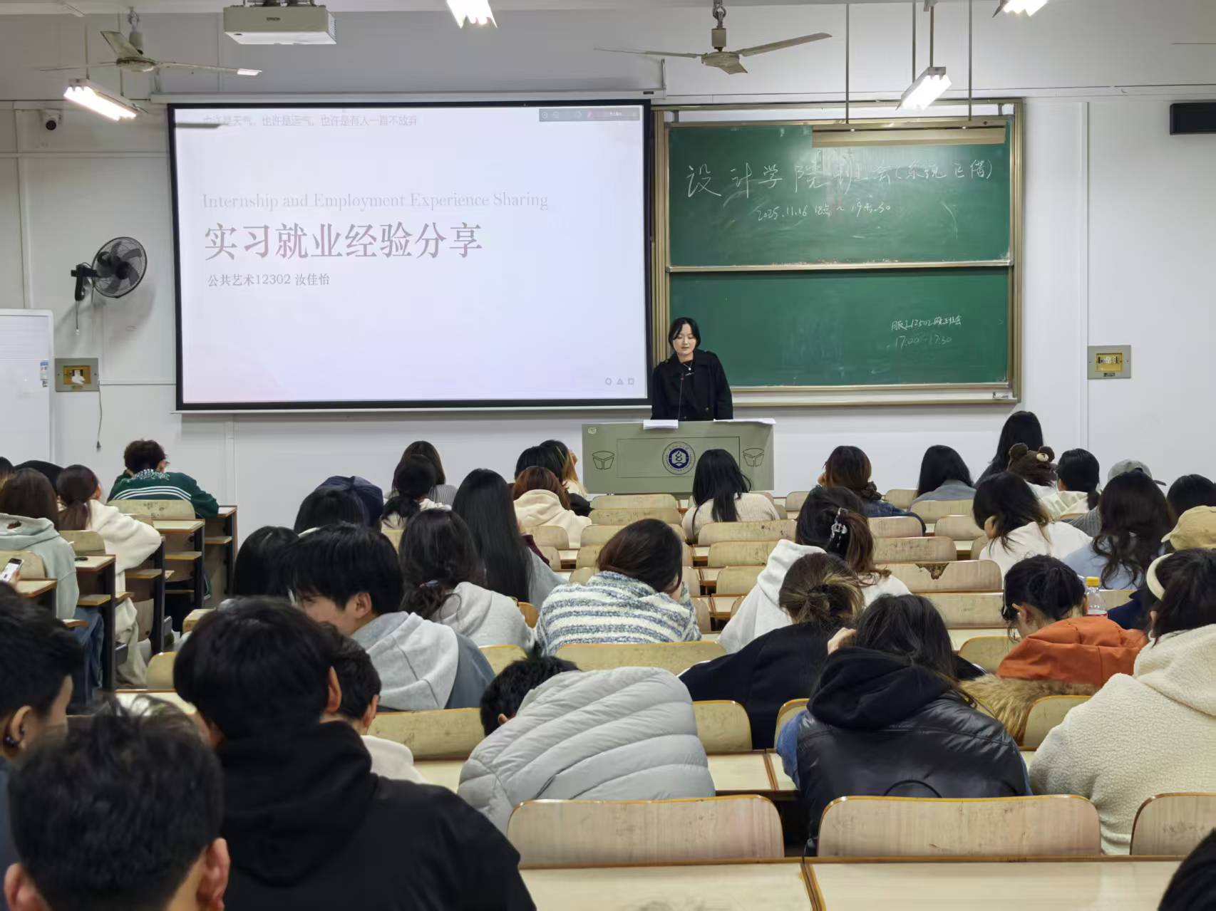 两位同学结合自身经历,倾囊相授。在学科竞赛方面,她们详细分享了从项目选题、团队组建、方案设计到最终答辩的完整流程与宝贵经验,强调了创新思维、跨学科合作与坚持不懈的重要性,并展示了部分获奖作品,激发了同学们的浓厚兴趣。在实习与就业准备环节,两位同学就如何精准定位职业方向、高效投递简历、准备面试以及提升职场适应能力等方面提供了实用建议,帮助同学们提前规划职业路径,认清自身优势与不足。