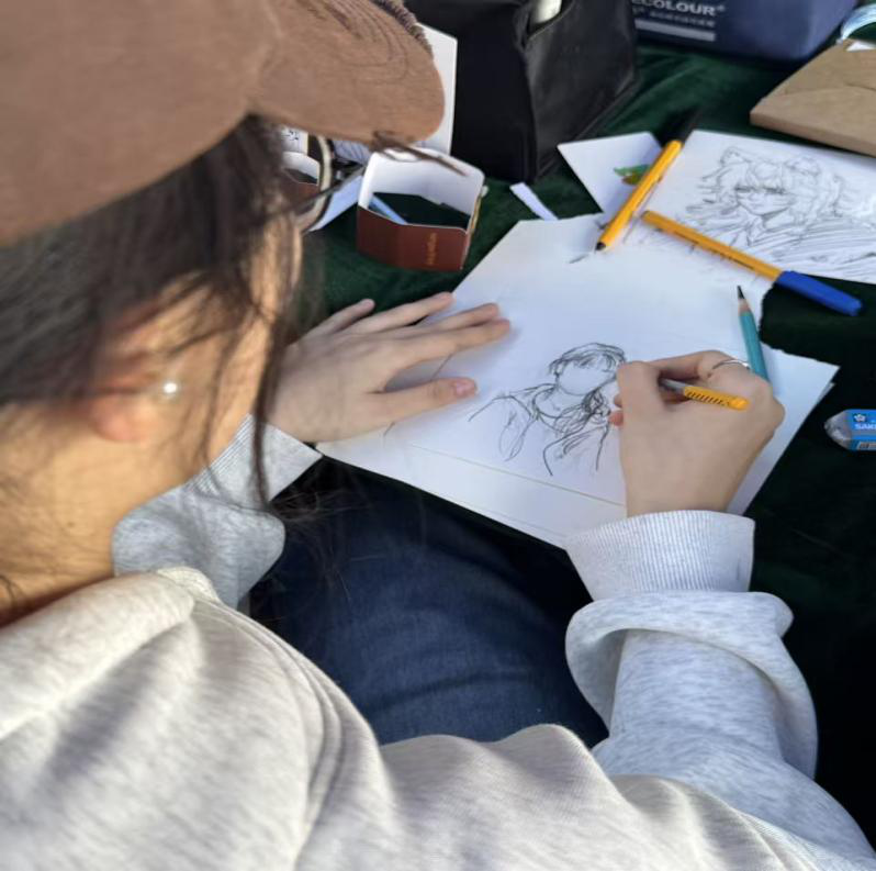 在活动现场,同学们设置了专属创作区域,以“留存温暖”为主旨,为参与师生提供简笔卡通画像绘制服务,定制立冬专属纪念画像,吸引着路过的同学们频频驻足观赏。