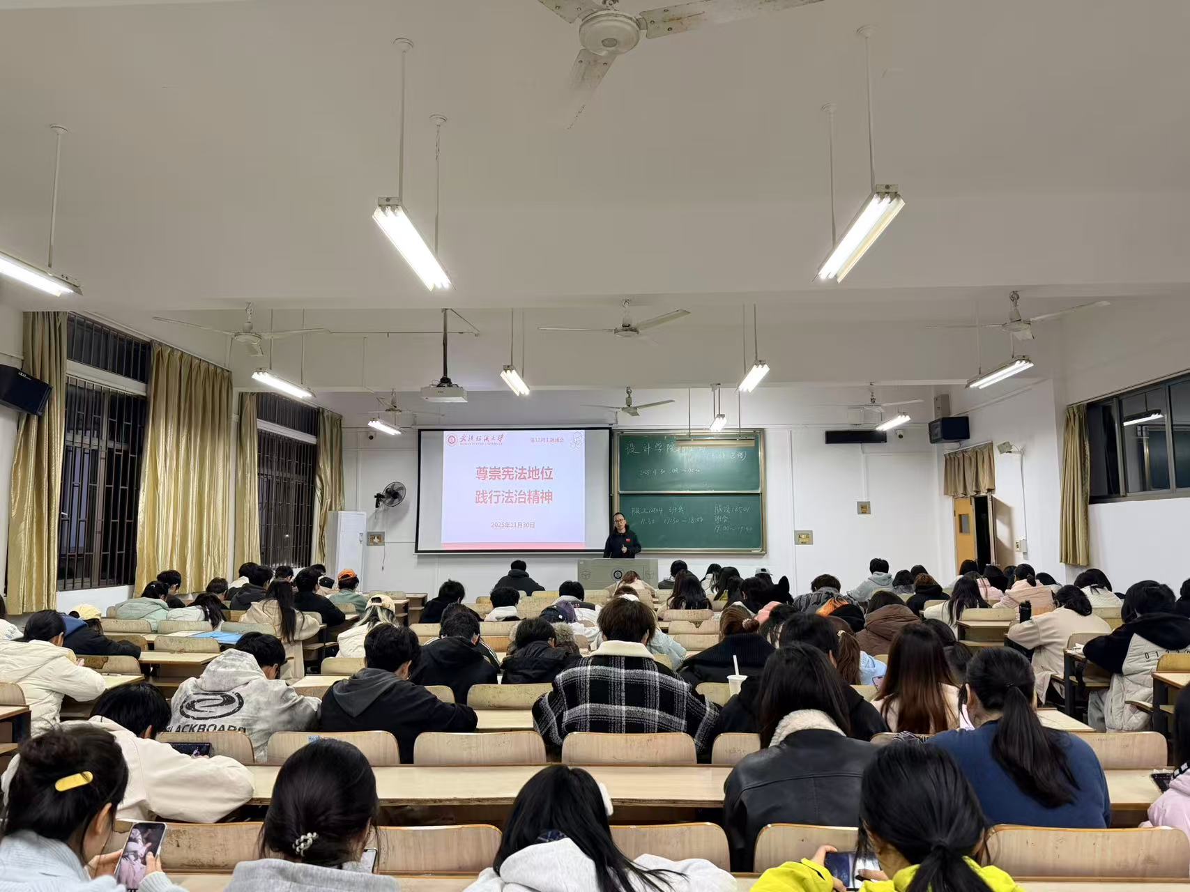 此次“尊崇宪法地位 践行法治精神”主题班会的召开,不仅为同学们搭建了学习法律知识、交流法治感悟的平台,更有效强化了师生的法治意识与责任担当。下一步,创新设计学院将持续推进法治教育常态化、多样化,让法治精神真正融入校园文化。