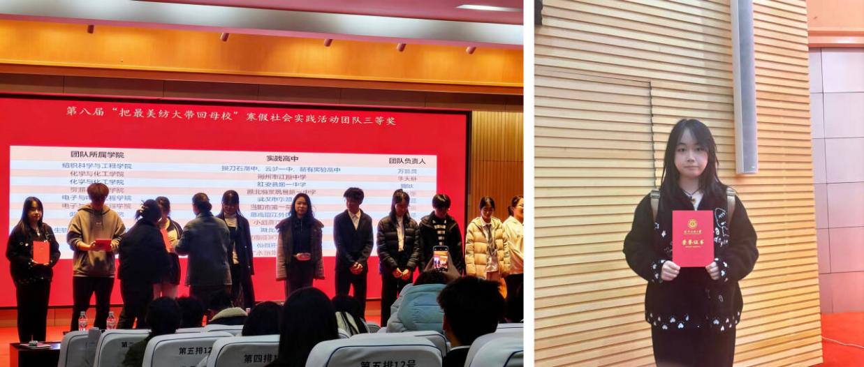 为深入推进实践育人工作,加强高校与高中育人衔接,助力学校优质生源吸引,3月26日,由本科生院主办、材料科学与工程学院承办的第八届“把最美纺大带回母校”寒假社会实践公开答辩会在阳光校区国际学术报告厅圆满举行。创新设计学院高度重视、精心组织,积极选派学生参与,最终凭借扎实的实践成效和出色的答辩表现,荣获本次答辩会三等奖。