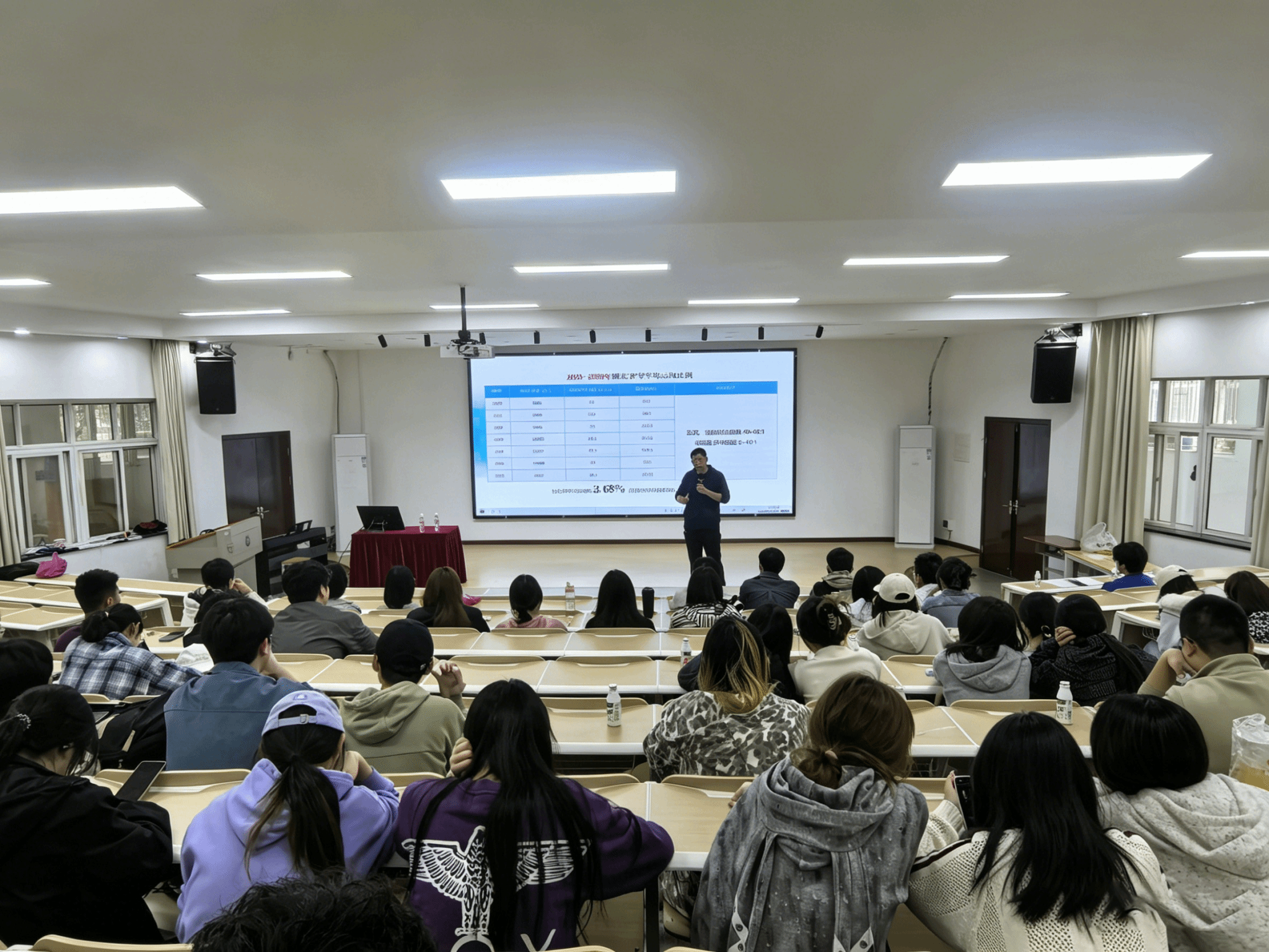 刘园美以《“研”来如此——换个角度告诉你考研真相》为题,紧扣设计类专业考研特点,结合近年全国考研形势、报录比数据与典型案例,从择校定位、备考规划、心态管理、路径选择、调剂策略等方面,为同学们带来一场干货满满、指导性极强的分享。他指出,考研是一场需要坚持与方法的成长之旅,设计类学子要立足专业优势、找准与自己的结合点,系统规划、科学备考。