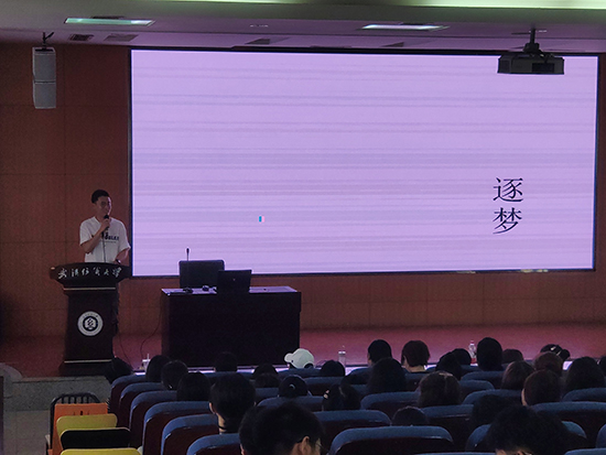 接着,沈钦来同学就自己的大学经历、社会经历和读研经历进行了经验分享。他从三段不同的时期分别讲述了自己的求学成长经历。他建议新生们在大学多多参与学校、学院的学生组织,几年下来将有丰厚的收获。同时,在学习上也不能松懈,不仅要掌握课堂上的知识,也要积极参加校外的专业比赛和创新创业比赛,特别是读研期间,经过了几年的沉淀,在专业上很容易出成果。最后他表示,希望大家能热爱生活并培养自己独特的审美眼光,大胆尝试,将失败的经历作为经验,一步一步提升自我。